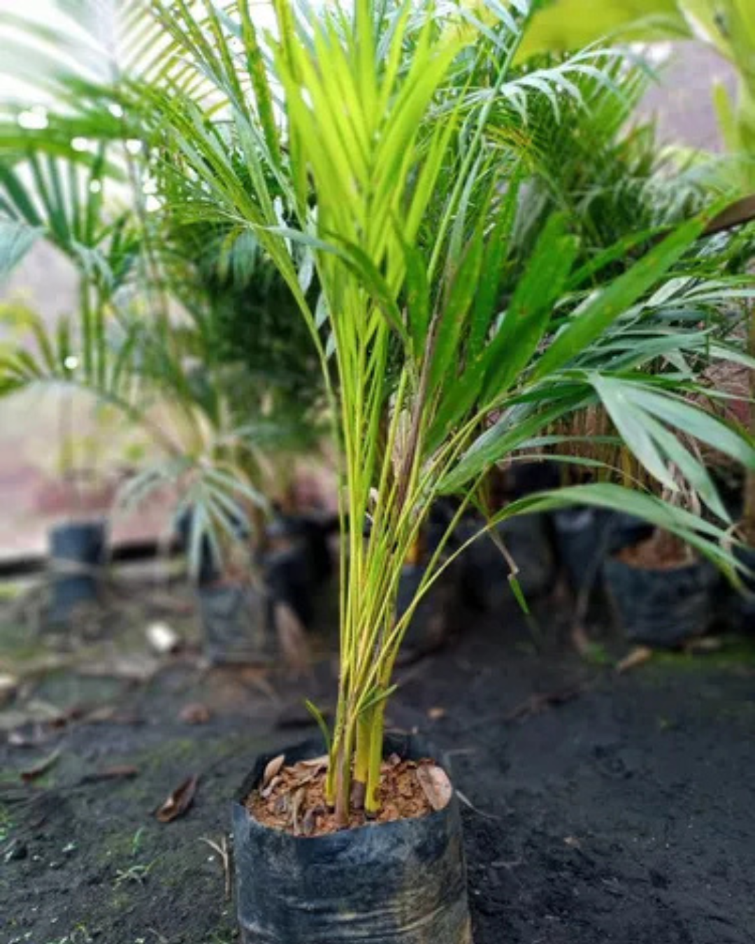 A palmeira-areca-bambu é uma das espécies mais populares no paisagismo e na decoração de interiores, graças à sua aparência elegante e facilidade de cultivo. Originária de Madagascar, pode atingir até 6 metros de altura quando plantada ao ar livre, mas permanece menor quando cultivada em vasos. Seus múltiplos caules finos e dourados, semelhantes ao bambu, combinam perfeitamente com suas folhas longas e arqueadas, conferindo um nível visual e tropical.