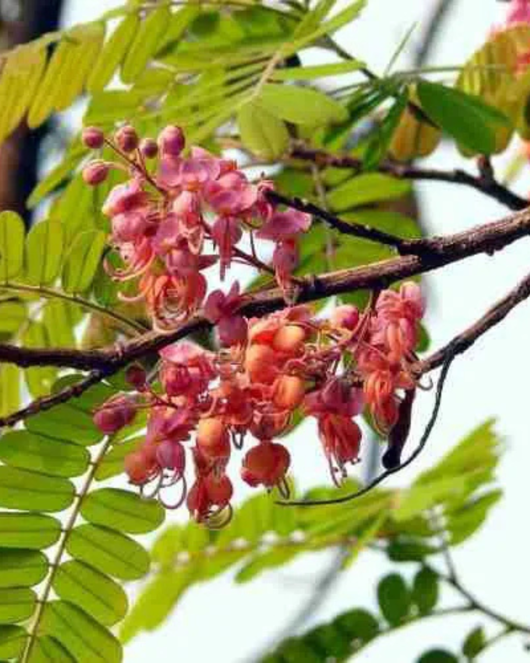 A cássia-rosa é uma árvore ornamental amplamente utilizada no paisagismo por sua floração exuberante e delicada. De porte médio a grande, pode atingir entre 8 e 15 metros de altura, com copa arredondada e folhas compostas que proporcionam leveza à sua silhueta. Sua principal característica são as flores em tons que variam do rosa-claro ao rosa-intenso, reunidas em longas inflorescências pendentes que criam o encantador efeito de “chuva de pétalas”.